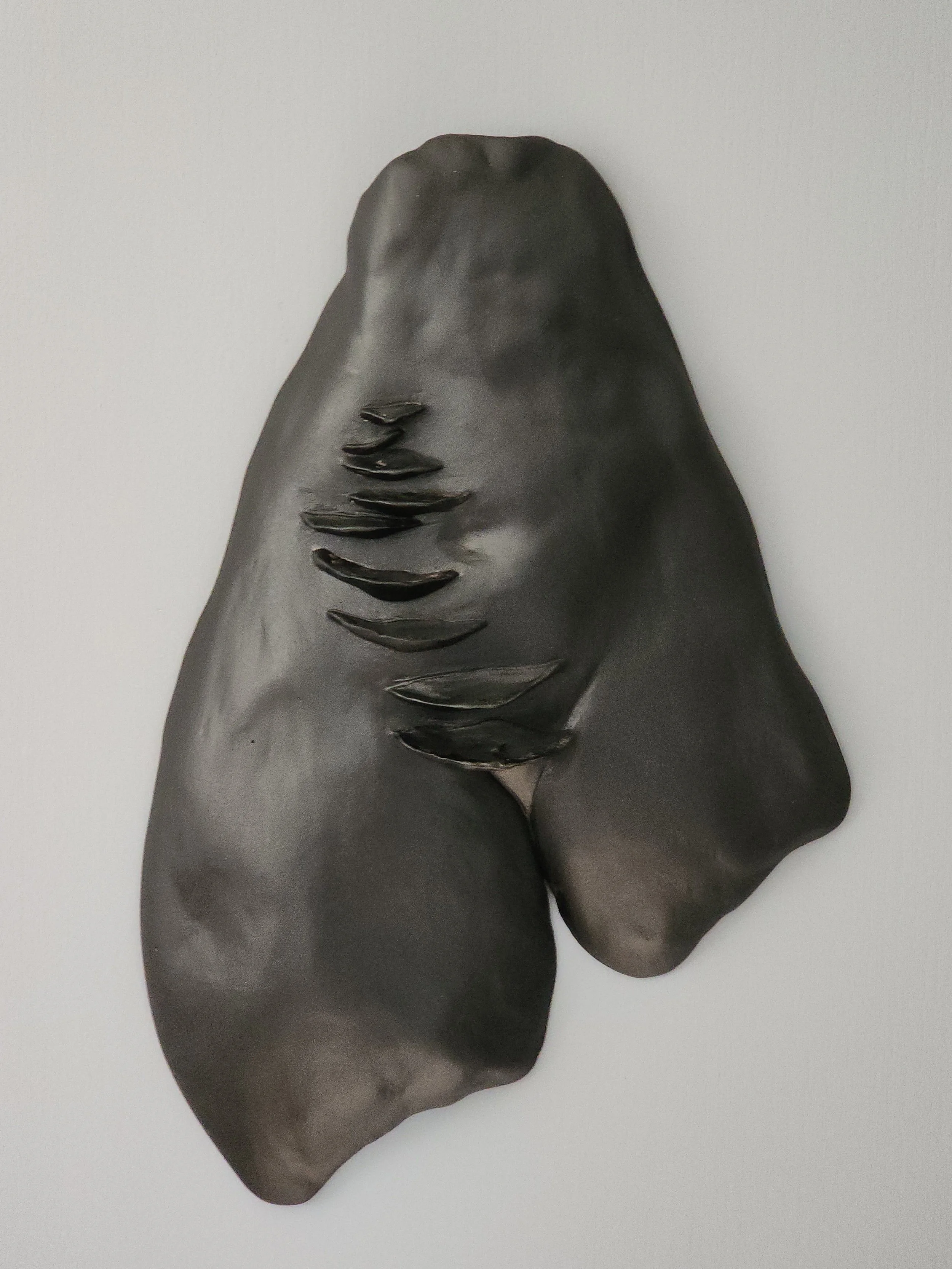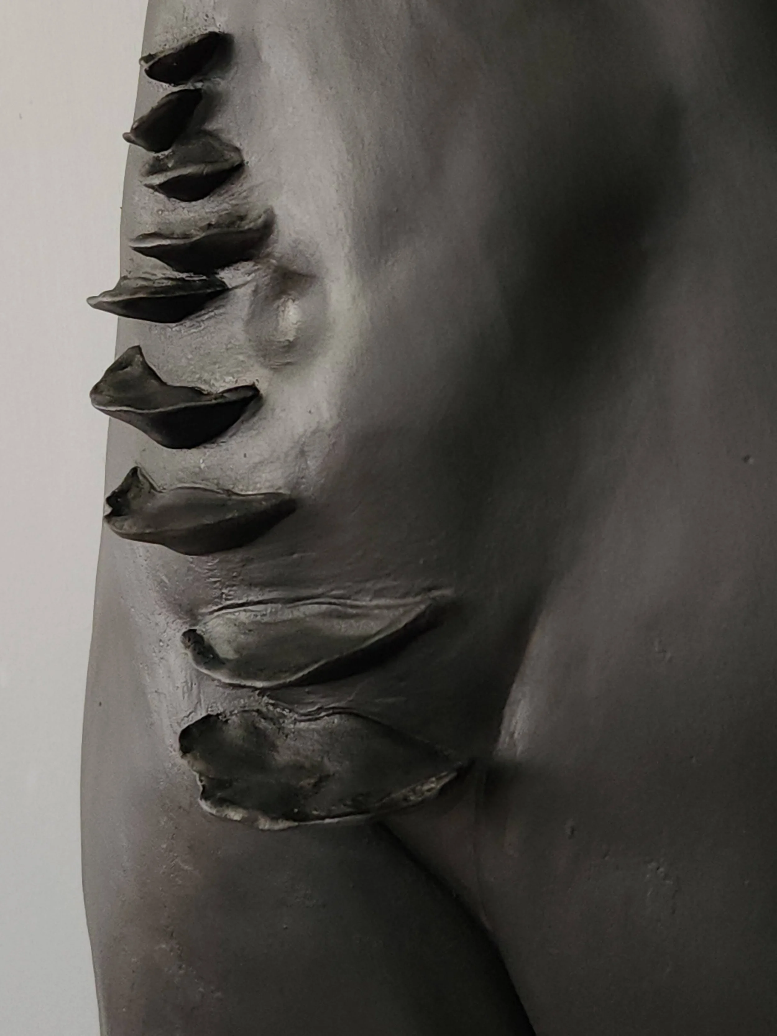 Black Torso with Fungi 15x9x3" Ceramic 2023 $500